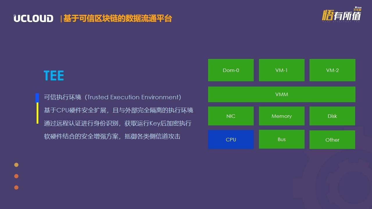 这就会涉及到一个非常大的安全问题,云上的数据安全到底该怎么办?实际上,数据安全其实包含两方面,一方面是数据流通安全,另一方面是数据使用记录的可信,前者通过可信计算芯片TEE的技术支撑,后者通过区块链技术本身的机制做支撑。