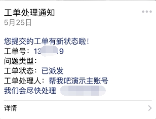 现场的工作人员通过帮呀APP每次提交新状态,都会在公众号给客户发一条推送,包含目前最新的进度说明;而公司内部的管理人员也可以及时地看到项目的最新进度。