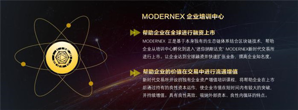 新的时代需要新的发展思路。Modern Exchange新时代交易所正在通过五大功能版块(企业资产评估中心、企业孵化培训中心、Modern Exchange交易平台、ETBC的智能合约、ETBC以太星链)为实现全球智能新经济体的使命而奋斗!
