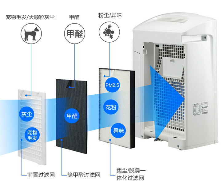 为了解决这一问题,夏普的研究人员绞尽脑汁,他们发现传统的过滤技术功能有限,即使采用负离子技术,也只能对空气中带有正电荷的有害物质起到净化作用,并不能解决成分复杂的空气中有害物质对健康的威胁。最终他们从人类白血球免疫原理中获得了灵感,成功研发PCI正负净离子群技术。这是一种空气净化技术,其发生装置经由高压放电释放出与自然界相同的正、负离子群,通过这些离子结合为OH自由基,剥离细菌、霉菌蛋白质核的氢离子(H+),形成水分子(H2O)实现抑制病菌、分解失活浮游霉菌,从而达到去除病菌,净化空气的效果。而且,这种离子群在空气清新的森林中,浓度特别高,能够为生活营造一种森林般的清新感。对于埋首于书山题海的学生来说,除了对空气中不良生物成分的抑制、对PM2.5颗粒的过滤外,这种现代科技营造的自然清新感也非常有帮助。