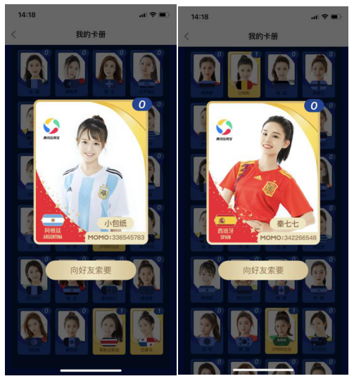 在跨平台互动上, 应用宝和陌陌也展开了深度的平台互动,发起跨平台兑换集卡的活动,在世界杯期间期间,应用宝独家发放阿根廷金球卡和西班牙金球卡的兑换码,陌陌用户在可以登录应用宝后,领取兑换码后进行兑换。通过有趣的兑换活动将双平台打通,以激励用户的方式推广应用宝,提高应用宝APP的下载量和注册量,实现用户拉新的效果。《MOMO好彩头》直播期间,也会通过镜头反投,告知观众如何通过应用宝获取兑换码集卡。