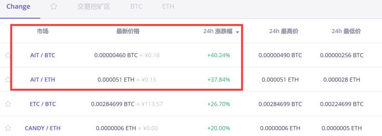 可凡是总有特例,AICHAIN代币AIT便是这次万里红中的一点绿,在全面大跌之下,AIT并未表现乏力,相反则是逆流而上。在一些交易平台上,AIT连续两天出现“大阳线”,同时连续两天涨幅第一,这一度让AIT的持有者们有些摸不着头脑。