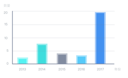 资本对区块链产业的关注与支持力度持续增加。近两年区块链领域的投资热度明显上升,融资事件从2014年的6起迅速提升到2017年的96起,2018 年第一季度投资事件数量就达到了68起。