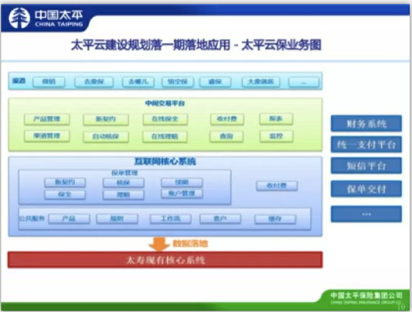 平台落地后便是做应用,太平人寿成立了创新发展部,在云平台上做应用——太平云保就是这样一款互联网核心应用。