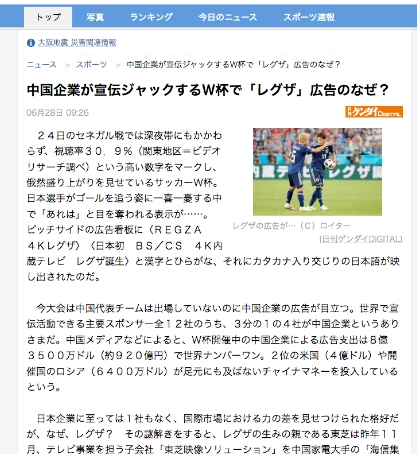 针对这一热门话题,日本雅虎新闻等多家知名媒体专门发布报道,公布这则广告背后的“主人”:这次世界杯赞助商没有日本品牌,REGZA的广告是因为被海信收购。