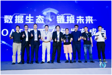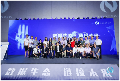 潘旵(挪亚基金会主席兼 CEO)、孔华威(中科院计算所上海分所所长,起点资本合伙人)、肖勇(挪亚天使投资人)、张议云(极豆资本 创始人)、陶涛(挪亚联合创始人)、王丹(伽马资本创始人)、全勇骅(挪亚联合创始人)、许英龙(科银资本中国区 CEO)、童殿琳(鼎链资本创始合伙人)上台开启挪亚(NOAT)主链的启动仪式。