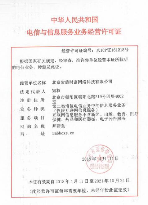 目前,邦帮堂不仅顺利取得北京市通信管理局颁发的ICP经营许可证,拿到中华人民共和国公安部颁发的信息系统安全等级保护第三级备案证明(等保三级认证),还获得北京市高新技术企业认定及13项计算机软件着作权,具体证书和测评报告已经在邦帮堂官网、M站和APP上的“信息披露”模块进行了披露。