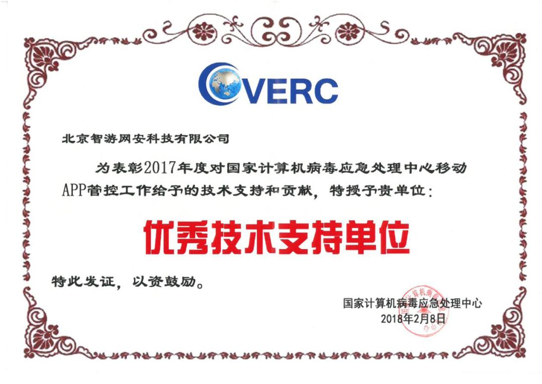 3月,爱加密被授予国家计算机病毒应急处理中心“2017年度优秀技术支持单位”称号,该奖项表彰了爱加密2017年对国家计算机病毒应急处理中心在移动APP管控工作给予的支持与贡献,同时也印证了爱加密多年来实战一线,对移动安全做出的卓越贡献表示肯定。