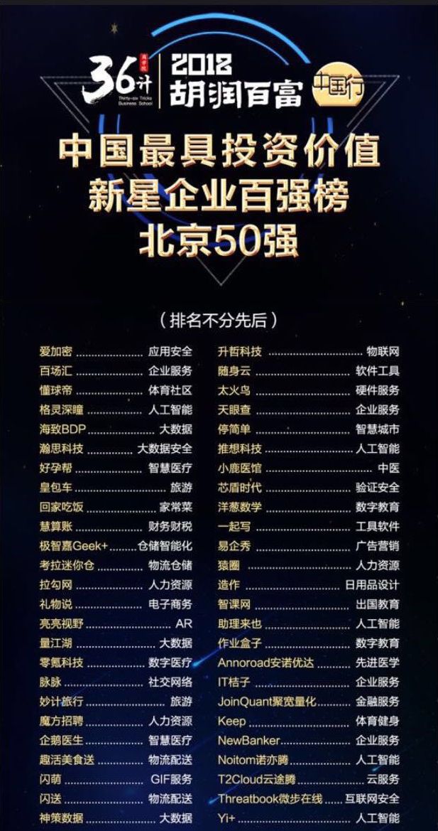 4月,爱加密荣誉入选2018胡润百富中国最具投资价值新星企业北京地区50强,爱加密在多重竞争下脱颖而出,成为领域内最具创新性和投资价值的新星企业。