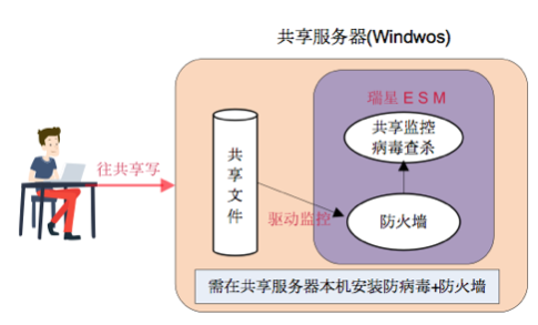 ➢ 监控+溯源:共享监控,对共享文件的读写进行动态病毒查杀,解决共享服务器病毒防护问题,同时记录病毒传输机器的IP,协助企业对病毒源快速准确定位。