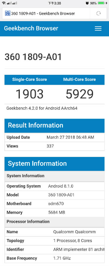 N7 Pro整体性能方面将比N7更强,至于其具体配置,由于360手机官方保密原因,目前还不得而知,但由于此前跑分成绩的曝光,猜测360手机N7 Pro可能搭载高通骁龙710处理器,全系配备6GB大运存和预装Android 8.1.0系统,至于单核和多核的跑分成绩则与小米8SE等机型处于同一水准。360手机N7 Pro还传闻会采用与坚果R1相似的横排双摄设计。从过去曝光的设计图来看,该机仍旧采用是micro-USB接口,电池方面,之前传言的6000mAh的可能性不大,应该在4000mAh和4500mAh之间。支持18W快充,有可能提供无线充电功能。另外,传言本次会发布两款新品,而另一款则是搭载骁龙845的高端旗舰机。
