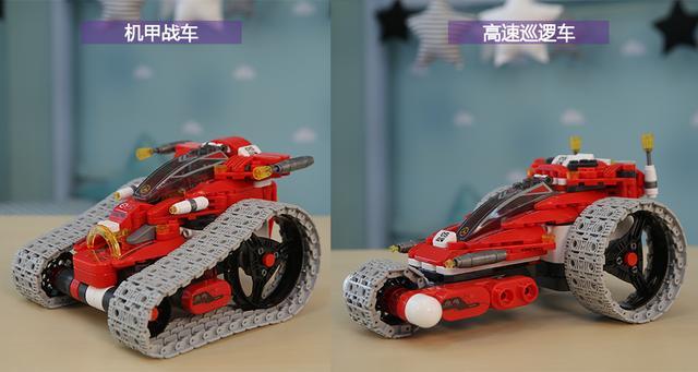 造型变了,性能也有大突破。以红色星球车为例,相比主造型机甲战车厚重威猛的造型,另一造型高速巡逻车更具有赛车的流线型设计。同样,在操纵时,也显得更加灵活,能轻易做出漂移等高难度动作。