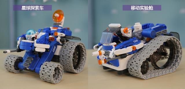 "星际探索"系列的最大特点,还在于每一款积木可以拼搭两种造型。见识过主造型的威风凛凛后,就可以将积木拆散,重新拼搭成另外一种造型,感受风驰电掣的魅力。由于积木设计的精度相当高,拆开完全不费力,重新拼搭也具有舒适的手感。