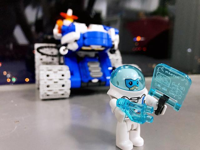 每款星球车还配有一个精致的公仔,它们既是星球车的驾驶员,也是孩子们星际探索故事中的小小主角。而这些小小的公仔,竟然每一个都是由15-20个小颗粒零件组合而成,精细程度让人惊叹。依托于精密的小零件,它们也可以像星球车一样变换不同造型,大大增加了趣味性。