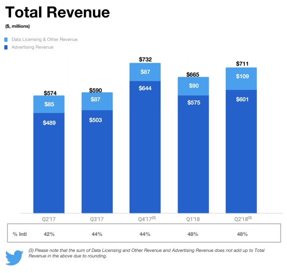 对于Facebook和Twitter 的大跌,MAU增速放缓是核心,但反映的点是它们的收入结构太单一,我们看下面两图,根据最新业绩显示,Twitter 85%的收入来自单一广告业务,Facebook更夸张,99%收入都是广告。这两家公司做的都是广告率极高的产品,说白了就是通过广告变现太用力了。一旦用户增速回落,广告变现的天花板清晰可见。