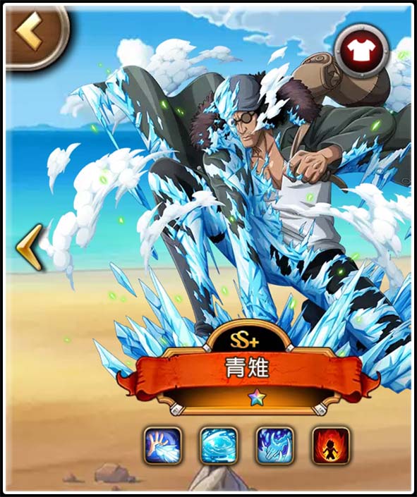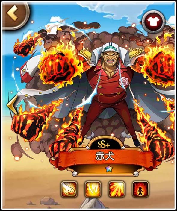 ③养成建议。对赤犬的养成,或者说在杰克斯之后,赤犬和青雉的选择问题。普通玩家主要是考虑自己的人物储备情况,简单来说,能够支撑水系体系的,那就优先青雉,能够支撑火系体系的,那就优先赤犬。而如果两个体系都无法支撑,那么建议优先赤犬,其高爆发在某些副本和回忆中的作用较大,因而其通用性也要稍好于青雉。