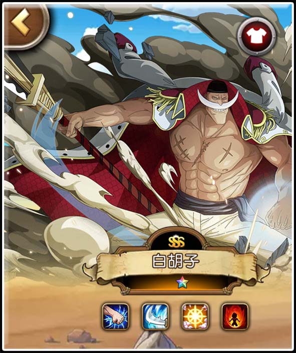 ③养成建议。白胡子本质上是个免费人物,无论玩家有没有钻石,愿不愿意熬夜,总之,每次不花钻石随便弄两三千分外加六七片人物碎片是很简单的。因此即便不氪金,一年内出白胡子也完全可行。对于普通玩家来说,一个近乎不受控且越砍越狠的白胡子,肯定是值得培养的。
