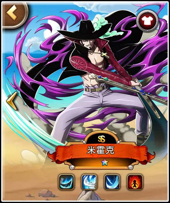 ③养成建议。普通玩家要觉醒米霍克并不难,难点在于专属。而且一般来说,通缉兑换优先杰克斯,其次赤犬或青雉,米霍克虽然单价较低,但普通玩家也很难有多余的荣誉值。综合来说,即便有了专属宝石,但米霍克仍不应成为普通玩家的首选。