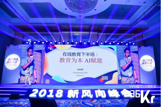 8月21日,由36Kr主办的2018新风向峰会在京举行,全球首家在线教育“独角兽”企业iTutorGroup受邀出席。iTutorGroup首席运营官汤峥嵘以“教育为本 AI赋能”为主题,分享了集团旗下成人在线英语教育品牌TutorABC以及青少儿在线教育品牌vipJr在发展中如何坚持教育本源,并将AI技术运用到教育场景的创新成果。