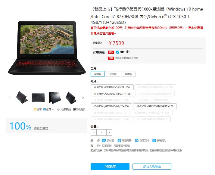 华硕飞行堡垒5代FX80星途版华硕商城购买链接:http://store.asus.com.cn/gallery.html?scontent=n,FX80%E6%98%9F%E9%80%94