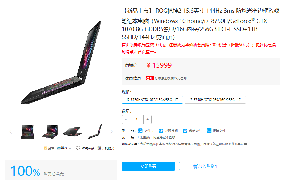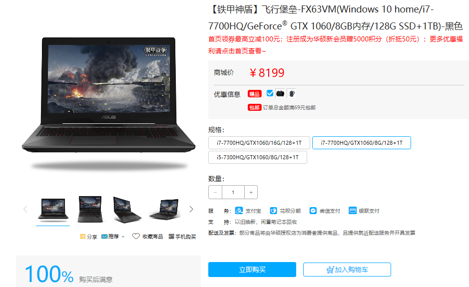 华硕飞行堡垒4代FX63VM华硕商城购买链接:http://store.asus.com.cn/gallery.html?scontent=n,FX63VM