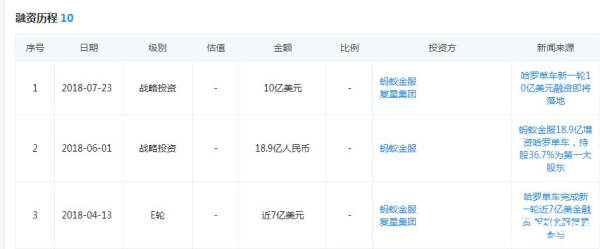 企查查显示,就2018年哈罗单车已融了3次投资,蚂蚁金服不断增持。