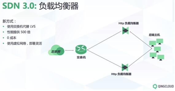 青云QingCloud在业内首次实现这种“软硬兼施”的大规模部署的解决方案,该方案很好的适应了实际的业务需求,同时在性能上硬件交换机相比LVS来说,转发率提高了500倍,由于没有了LVS,部署成本得到了大幅下降。