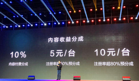 例如,经销商可以在售卖电视的过程中对顾客进行会员转化,转化率为超过 50% 则获益 5 元/人,超过 80% 则获利10元/人。此外还可以享受每一台终端付费内容收入10%的分成,利润很可能比纯硬件更高。