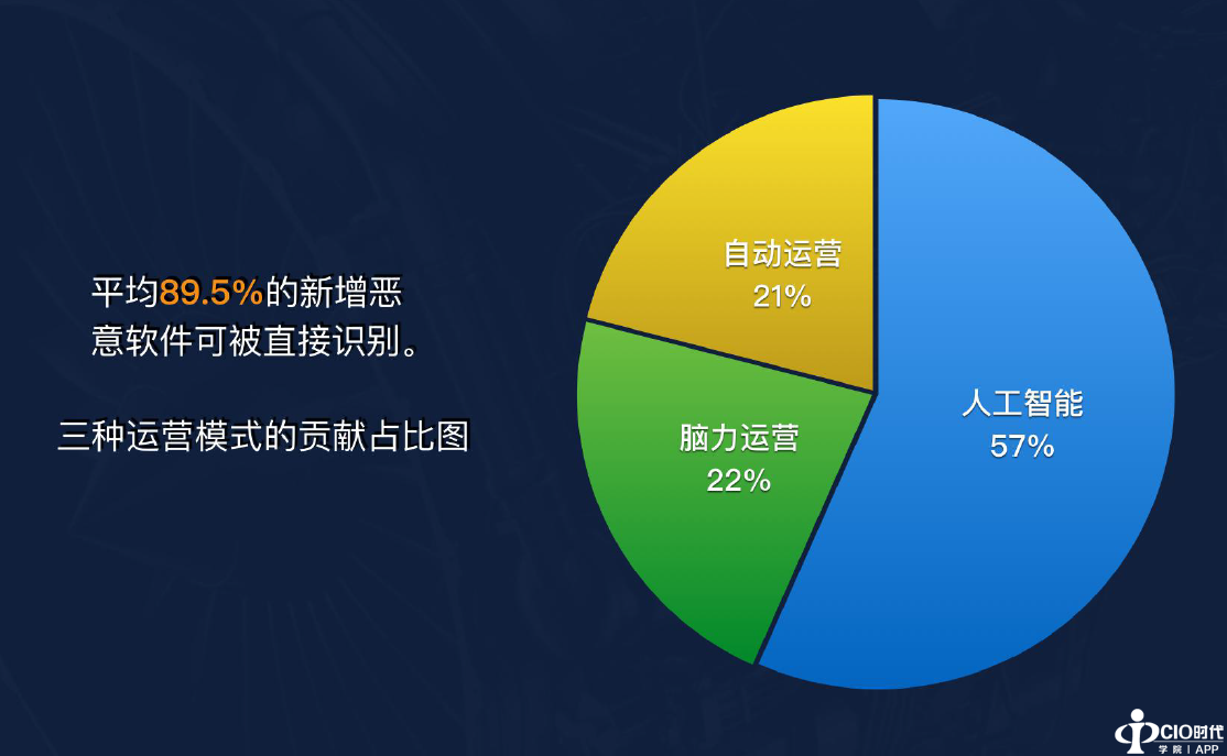 2、人工智能赋能。经过两年时间的研发、运行和监测,基于海量样本训练而来的针对Windows恶意软件的智能识别方案,可持续性地跟踪恶意软件对抗技术的发展,整体效果令人满意。