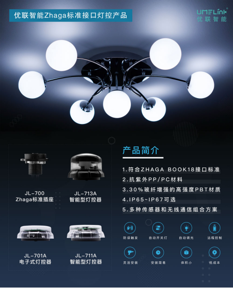 ZHAGA是新一代LED光引擎介面的规范,由全球照明大厂合作组成的ZHAGA联盟所发起,推动LED介面的标准化,有助于LED照明产品的普及。优联智能技术负责人谈到,“目前在中国,基于ZHAGA标准接口的灯控器研发生产还属于空白,优联智能率先关注到此领域的巨大优势和机遇,第一时间进入研发阶段,在自开发完成三款NEMA标准接口的灯控器后,未来将针对国内市场,开发十余款基于ZHAGA标准接口的灯控器。”