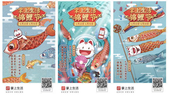 众所周知,5月底,各大电商平台便开启618大战,“掌上生活锦鲤节”活动时间为6月10日—30日,此时间段设置既借势618电商大战不断加强的社会关注度,又能形成错位竞争,并占位后半月营销空档,选取巧妙。更为重要的是,此时间段与“回血”消费者的理念十分契合。