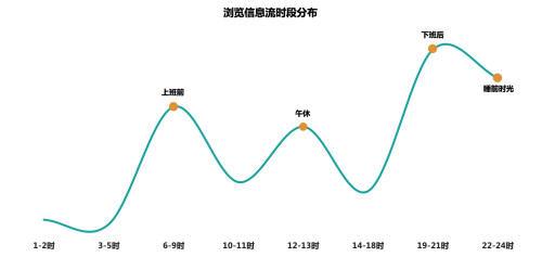 68%网友会选择用移动设备浏览信息流,最习惯在晚上7-9点(占比26.8%)阅读,此外22-24点(占比22.6%),12-13点(占比15.5%),6-9点(占比18.4%)也是主要阅读时间段。四个阅读波峰差距不大。