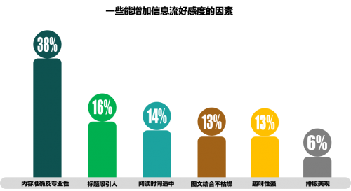 一篇文章的内容准确及专业性强,以及一个吸引人的标题将会增加网友的好感度。而内容准确及专业性依据网友的选择重要性排序又可依次分为知识准确23.0%、分析专业21.6%、内容真实17.6%、主题明确13.5%、时效性强6.8%等。