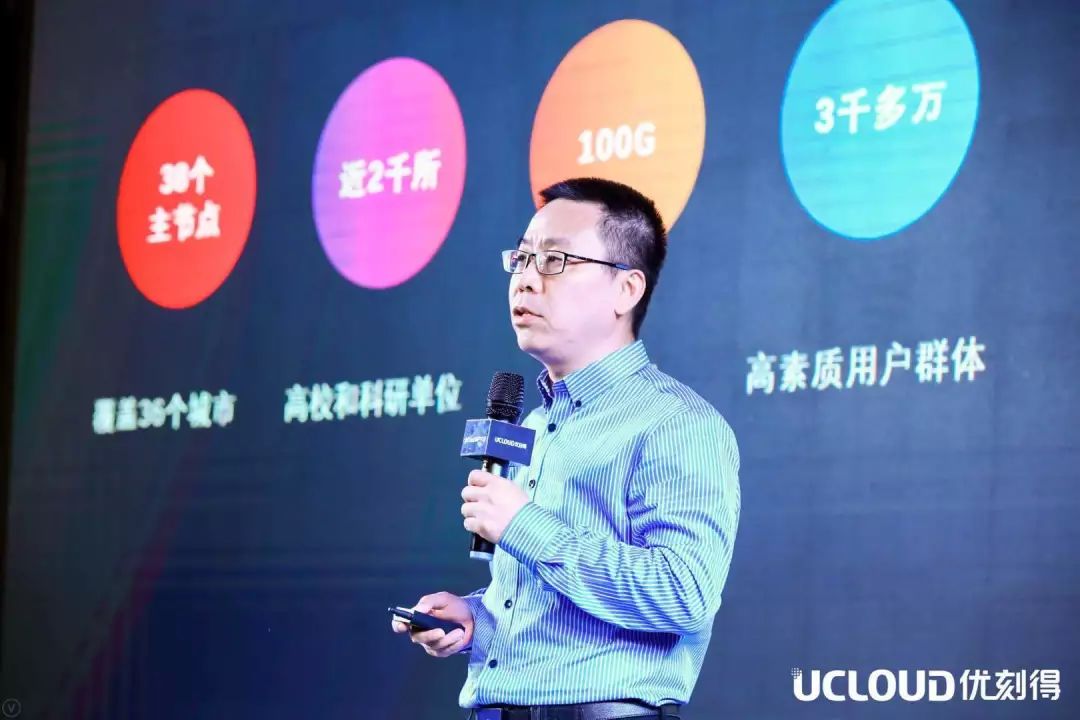 大会现场,UCloud技术副总裁杨镭重点介绍了UCloud差异化产品助力传统企业升级、互联网企业创新的案例,包括智慧港口、交通、电商等行业。