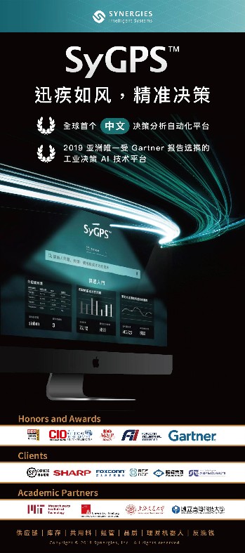 传统企业如何在激烈的市场竞争中实现可持续生存?数据驱动分析决策急需落地!Synergies 麻省理工研发团队耗时3年研发的次世代企业级Decision Support System (DSS) 4.0人工智能数字化决策平台--SyGPS™,由智能串连数据、算法All-in-one、特定算法优化企业的特定问题三大优势形成业界首创DPA算法架构,赋能企业革命性的数据分析思维,协助企业找到营运决策的最短路径,让企业决策快10倍。