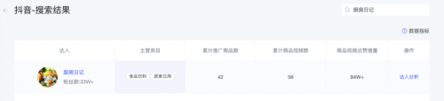 此外,通过达人榜的搜索功能,也可直接搜索想要了解的达人带货数据。