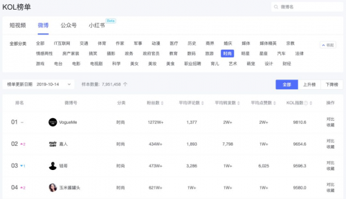 运用去水算法,从运营、互动、视频等角度出发,用独创的KOL指数更客观地评价KOL价值,并以内容类别及所属行业进一步细分,输出权威的KOL榜单。
