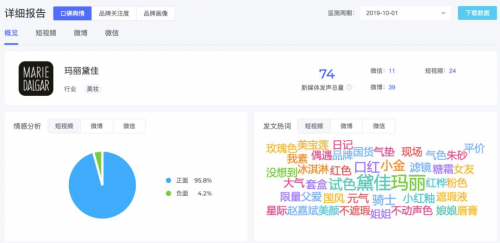 进入具体品牌的详情页,可查看品牌在社媒中口碑舆情、品牌关注度、品牌画像的详细报告,广告主可通过该功能快速查看自有品牌或竞品的社媒情报。
