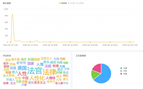 监测某个推广活动相关的媒体数据情况,实时查看广告的转赞评等互动数据,细化到小时级别,同时还可看到评论热词及用户评论中的正负面情感。