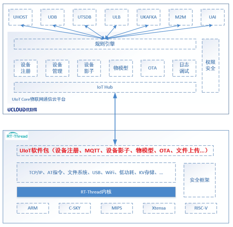 目前,UCloud与RT-Thread睿赛德科技联合发布了UIoT RT-Thread软件包,实现物联网设备与UCloud UIoT Core物联网平台的连接,助力海量设备上云,加速产业升级创新。