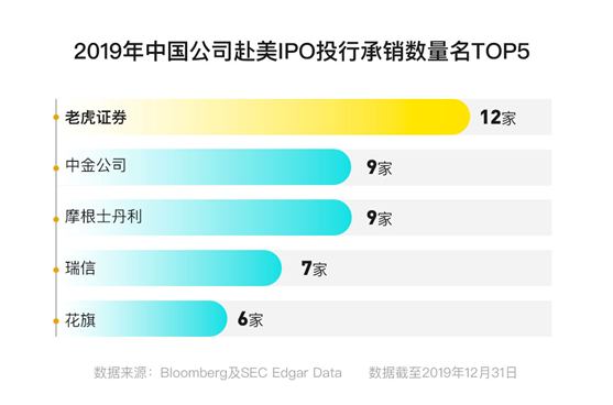 从2019全年来看,老虎证券已助力18家新经济企业成功赴美上市,其中12宗为承销项目,总体募资金额近12亿美元,以出色成绩收官。Bloomberg及SEC Edgar Data的数据显示,从数量来看,老虎证券是2019年承销最多中概股赴美上市的券商。