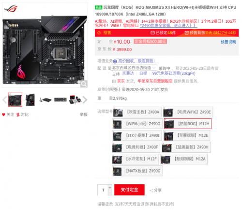 ROG M12H(WI-FI)主板作为ROG系列里的人气爆款,低调奢华的外观下蕴含强大性能,强化升级的供电散热,搭配创新的AI智能优化技术,可完美发挥第十代酷睿处理器的性能,是玩家的信仰之选。京东价3999元,现在活动预购10元定金可抵500元,最终到手价3509元,机会难得不容错过。链接:https://item.jd.com/100007074533.html