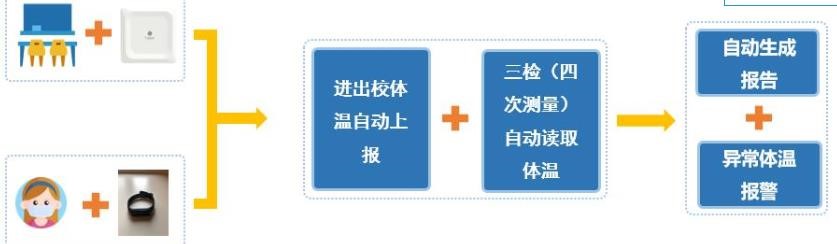 近日,某学校从全校师生安全角度出发,引进了一款测温手环,实现了校园智能化体温测量,全面筑牢校园防疫高墙。在该校园内,每名学生都佩戴着一块测温手环,学生进入校园后,手环便开启智能工作模式,自动测温,自动上传体温数据,做到体温实时监测、数据云端共享,若检测出体温异常,可自动报警。