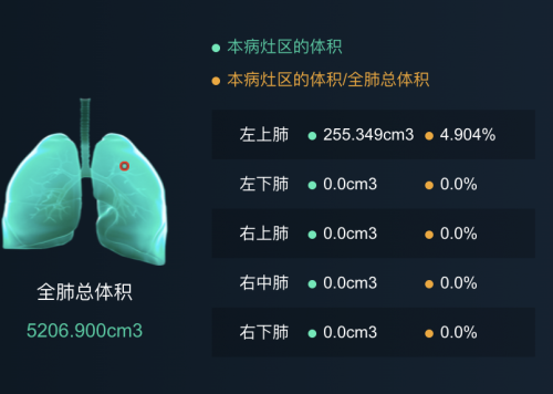 在新冠肺炎模型中集成了肺炎征象和胸腔积液征象模型,识别准确率在97%以上,征象分割和医生人工分割的重合程度在80%以上,处理一个CT序列的平均运算速度降至10秒,该系统还参与了工信部信通院组织的肺炎影像AI系统测评并获得通过(全国仅7家企业通过)。