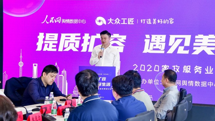(大众工匠创始人辛恒在人民网举办的“2020家政服务业创新发展研讨会”上分享发展经验)