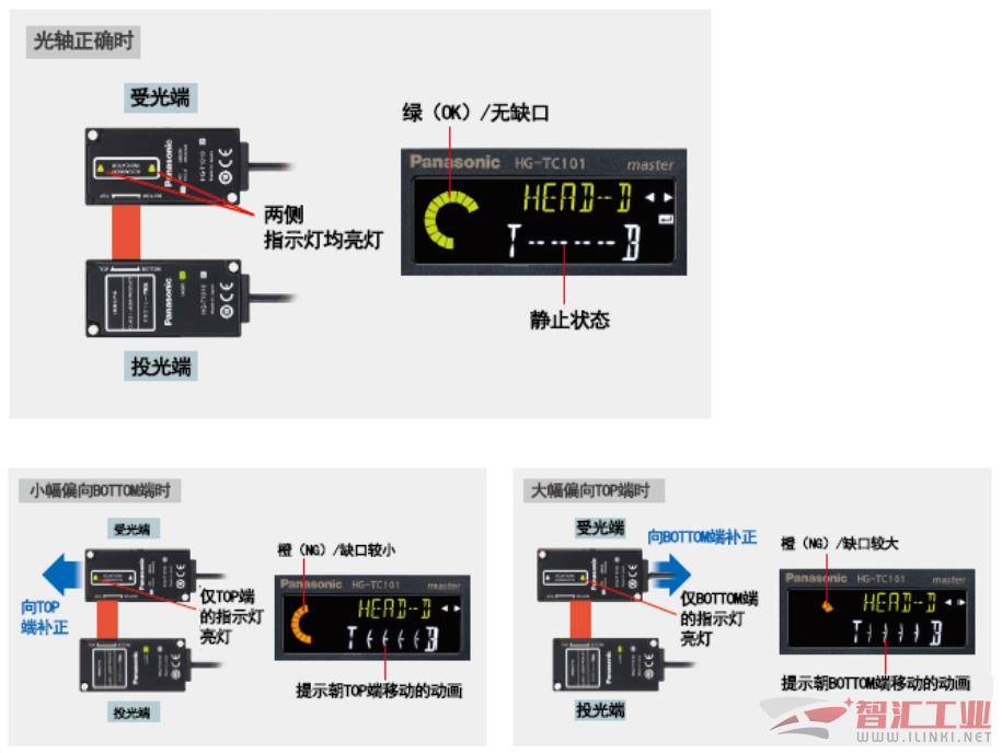 3、备有光轴调整辅助功能、传感器光头设置简单