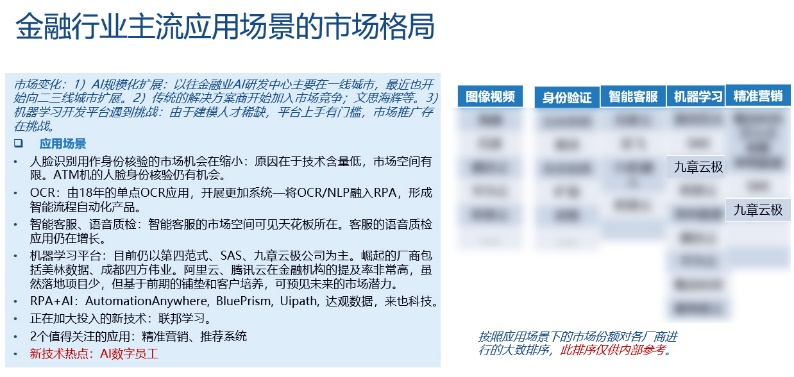 报告称,2020年上半年中国人工智能软件及应用市场规模达15.3亿美元,相比2019年上半年同比增长32.5%。在AI应用最为广泛的金融行业,九章云极DataCanvas在“机器学习”、“精准营销”等应用场景仍占据主要位置。