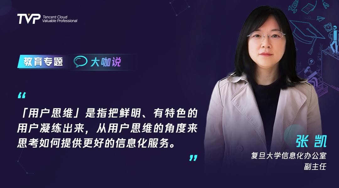 以复旦大学信息化的实际落地情况为例,张凯老师讲述了她的思考。张老师认为,在学校场景内,「从用户角度思考」主要有三方面内容,对师生而言,他们最大的诉求,就是「便利」;而对于学校管理者(如教授、导师、行政人员等),他们的诉求则是「效率」;更进一步,对于学校的决策者而言,他们所追求的是「精准的数据支持」,并能够进行辅助决策。