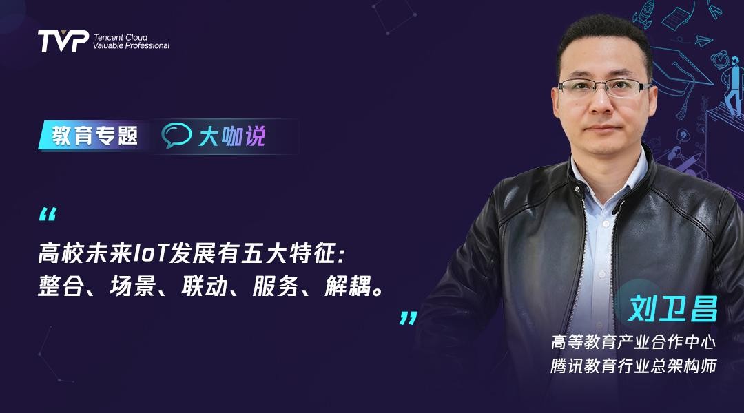 刘卫昌老师基于多年协助高校进行IoT建设的经验,一开场便总结了高校IoT的几大劣势与不足,并针对这些不足之处,提出了未来高校IoT发展的5的特征与方向。