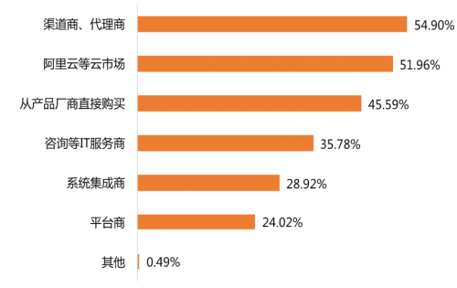 但这种不重视的策略可能是不对的。海比研究院《2021中国企业数智服务生态研究报告》中发布的数据表明,有51.96%的用户会在云市场购买企业数智化产品和服务。这说明,云市场已成为云时代生态系统的重要部分。